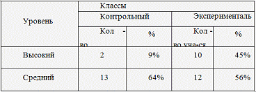После проведения формирующего эксперимента был сделан контрольный срез, по той же диагностической методике Е. Брежневой.