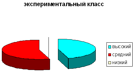 Результаты контрольного среза говорят о значительном развитии познавательной активности в экспериментальном классе. На высоком уровне активности находится 45% учащихся, на среднем - 56% соответственно. Низкий уровень познавательной активности у учащихся не выявлен.