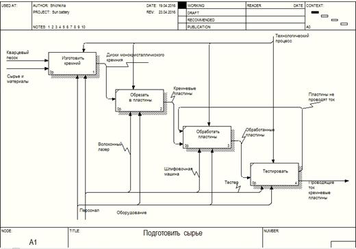 анализ процесса «Производство солнечных батарей», разработка IDEF0 модели процесса, построение