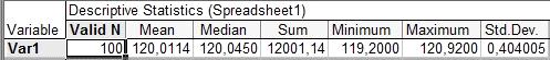 б) MEDIAN = 120,045 - медиана выборки;