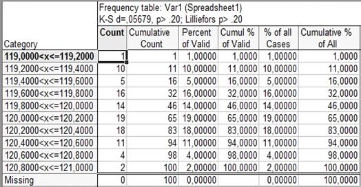 в) Percent of Valid - процент попавших в интервал значений;
