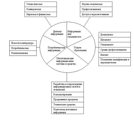 Выделяют пять секторов рынка информационных продуктов и услуг.