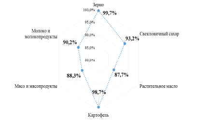размеры производства основных видов продукции растениеводства, пищевых продуктов, выпускаемых из растениеводческого сырья, площади закладки многолетних насаждений и виноградников, площади посевов кормовых культур в районах Крайнего Севера и приравненных к ним местностях, доля отечественного производства в ресурсах внутреннего рынка зерна, сахара, растительного масла и картофеля |