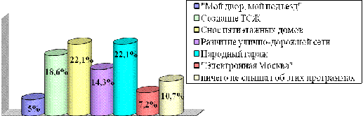 В ходе опроса определялся уровень знаний жителей района о следующих городских программах: