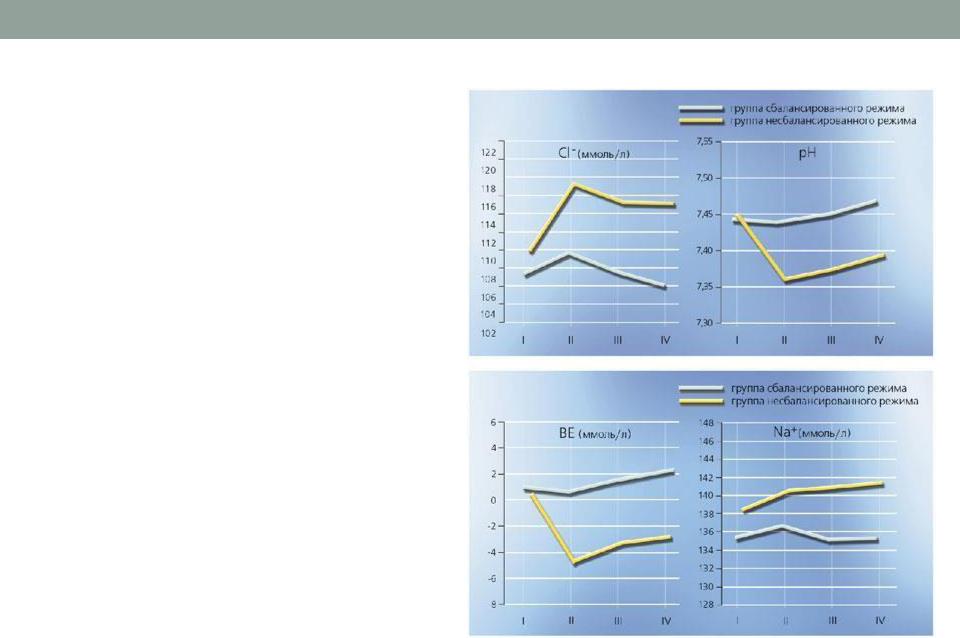 Сбалансированный режим восполнения объема кровопотери, основанный на Стерофундине Изотоническом,позволяет избежать гиперхлоремии, ацидоза, снижения избытка оснований и гипернатриемии. Результаты проспективного, рандомизированного, двойного, слепого исследования параллельных групп