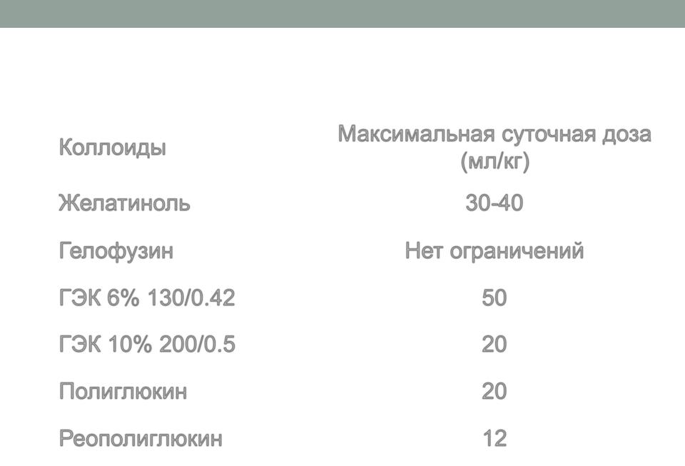 Максимальная суточнаядоза коллоидных растворов