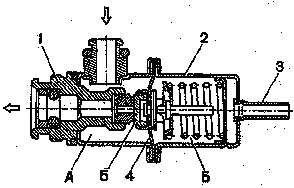 для вакуумного шланга; 4 - диафрагма; 5 - клапан; А - топливная полость; Б -