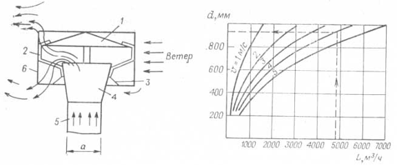 Рис. 1.5 Естественная вентиляция здания под действием ветра: 1-зонт