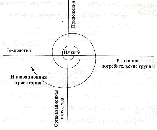 Инновация имеет четкую ориентацию на конечный результат прикладного характера, она всегда должна рассматриваться как сложный процесс, который обеспечивает определенный технический и социально-экономический эффект. Переход от одной позиции к другой, уникальной и новой, в этой арене является инновацией и следствием ведения компанией инновационной деятельности. Последовательность данного перехода во времени образует траекторию инноваций.
