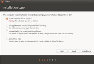 После нажатия на кнопку «Continue» пользователю предложат выбрать, как и на какой раздел диска установить Ubuntu: