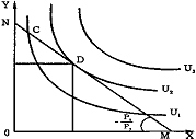 U2, U3. Кривая U1 пересекает бюджетную линию и поэтому является неоптимальным