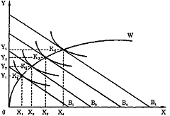 последовательно в положение В1, В2, В3, ..., Вn. Точки касания кривых безразличия с бюджетными ограничениями