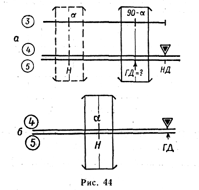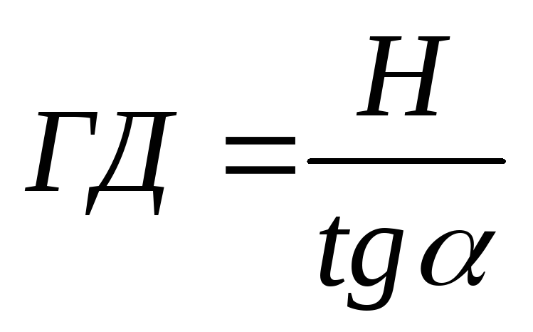 При малых углах α для большей точности расчета можно задачу определения ГД решать по второй формуле, используя шкалу тангенсов.