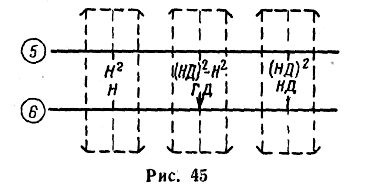 — устанавливая визирку по шкале 6 последовательно на деления, соответствующие значению НД и Н (рис. 45), отсчитать квадраты этих значений по визирке на шкале 5 и затем, найдя разность полученных квадратов этих значений (НД)2 — Н2, установить ее на шкале 5;