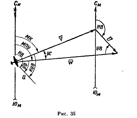 Не следует смешивать УВ с КУВ (курсовой угол ветра есть угол между направлением продольной оси самолета и направлением ветра).
