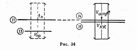 — установить визирку по шкале 13 (рис. 34) на деление, соответствующее высоте полета Нпр в км (при высоте более 11 000 м визирку устанавливать на значение высоты, равное 11 000 м; для более точного расчета скорости высотомер должен быть установлен на начальное давление 760 мм рт. ст.);