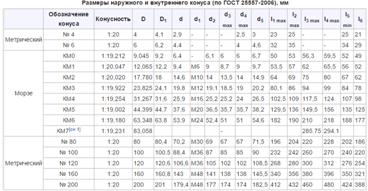 Рисунок 3.10 - Таблица размеров конуса Морзе
