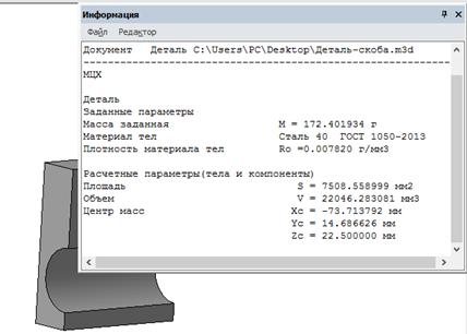 Рисунок 5.6 - Информация о скобе