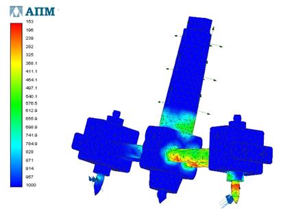 Из представленных итогов расчета, предельные напряжения, предел текучести допустимы для выбранного материала. Отсюда следует, что они не превышают предела для данного материала и указывают на малую вероятность выхода из строя инструмента. Также видно, что наибольшие напряжения возникают в центральной части корпуса. Это означает, что в данных местах будет происходить наибольший износ материала.