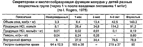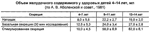 Некоторые характеристики желудочной секреции приведены в таблицах.