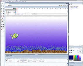 Шаг 1. Открываем в программе Macromedia Flash MX новый файл (Ctrl+N). Во вкладке Свойства устанавливаем размеры фона 550×330 пикселей, цвет фона белый, частоту смены кадров оставляем по умолчанию 12 кадров в секунду. Сочетанием клавиш Ctrl+F8 открываем вкладку Создание новых символов. В поле Name пишем Fish, выделяем мышкой в поле Behavior: Movie clip. В первом кадре с помощью инструментов Карандаш и Заливка рисуем и закрашиваем рыбку.