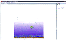 Шаг 5. Создаем пузыри, поднимающиеся вверх. Пузыри создаем программно. Для этого нажимаем Ctrl+F8, создаём новый Movie Clip Bubble, в первом кадре которого изображаем пузырь. На основной сцене создаём новый слой Bubble и вставляем на него только что созданный Movie Clip, располагая его ниже дна водоема. Выделяем мышкой пузырь, открываем вкладку Properties и даём имя bub.
