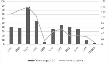 сделки (292 сделки превышали сумму в 1 млрд долл. США в сравнении с 227