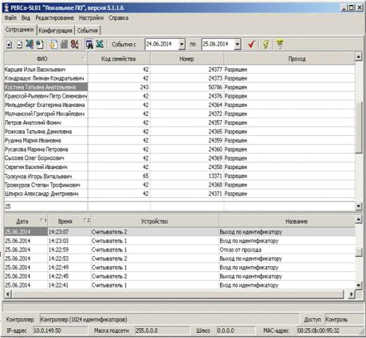 безопасности PERCo-S-20. Все зарегистрированные события прохода сохраняются в