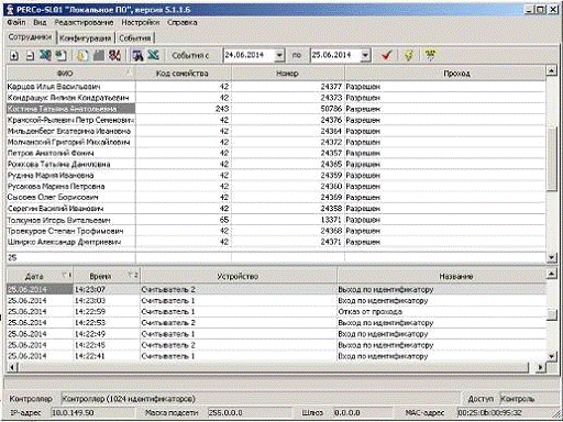 программное обеспечение PERCo-SL01 «Локальное ПО»