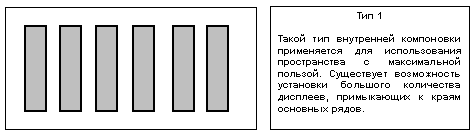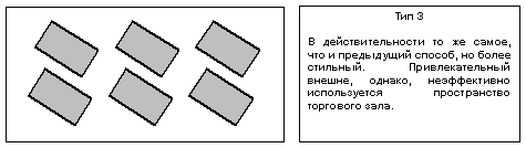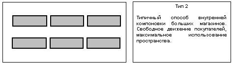 Рис.1 – Типы расположения торгового оборудования внутри торгового зала
