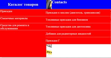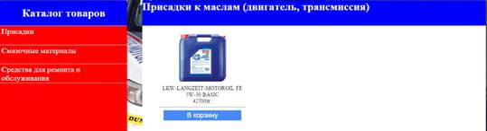 Осталось разобрать каталог товаров. Каталог товаров состоит из трех вкладок: присадки, смазочные материалы, средства для ремонта и обслуживания. При нажатии на присадки у нас появится виды присадок