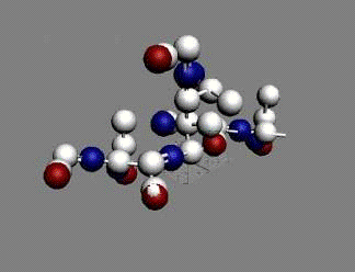 Представьте, что атом - это трехмерный шар, а группа атомов образующая аминокислоты - это сферы, объединенные между собой, элементы которые могут проходить друг сквозь друга, образуя цепи высокомолекулярных соединений. В один момент эти атомы остановились и превратились в сложное органическое соединение. Теперь они уже объединились, но могут вскоре и распасться.