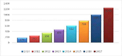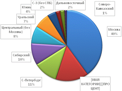 По данным рисунка мы наблюдаем дисбаланс в развитии рынка электронной коммерции. Становится видно, что покупательская активность с использованием интернет-магазинов наиболее распространена в Москве, Приволжском федеральном округе и С-Петербурге, несмотря на то, что там сконцентрировано меньше половины населения страны. По прогнозам компании McKinsey & Co к 2017 году объем продаж через интернет в столичных округах вырастет на 30-35%, хотя в это же время рост в остальных регионах составит 60% [10].
