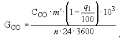 Выход окиси углерода при сжигании топлива: