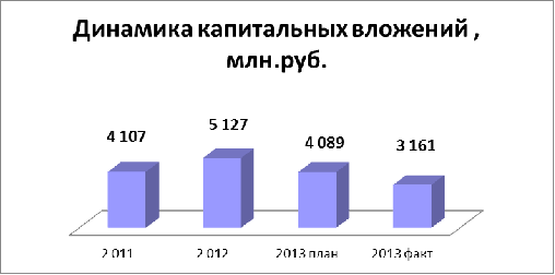 Рис. 9. Динамика объемов капитальных вложений за 2011 - 2013 гг.