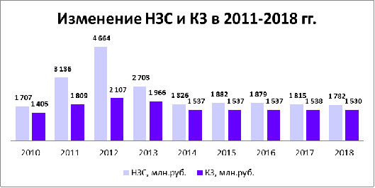 Рис. 12 Движение кредиторской задолженности и незавершенного строительства на период 2011-2018 гг.