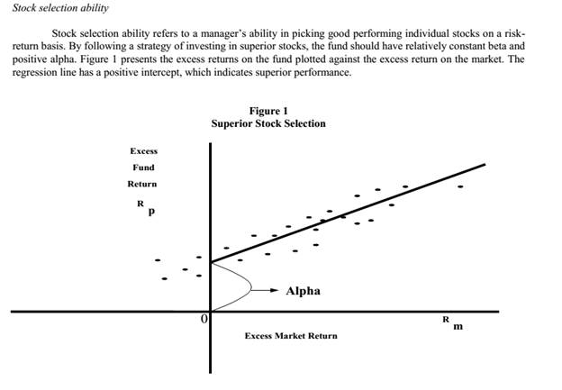 Как уже отмечалось ранее, под способностями к пикингу понимается умение управляющего находить среди множества всех доступных альтернатив активы, которые на момент анализа являются недооцененными рынком, и ожидаемая доходность по которым в будущем будет выше ожидаемой доходности по рынку. Одной из наиболее популярных мер, которая может быть использована для оценки пикинг способностей, является альфа Йенсена, которая была предложена им в статье 1969 года (Jensen, 1969).