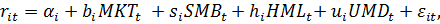 SMBt (small minus big) - доходность фактора размера в момент t (премия за риск размера);t (high minus low) - доходность фактора стоимости в момент t (премия за риск стоимости);
