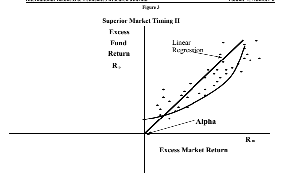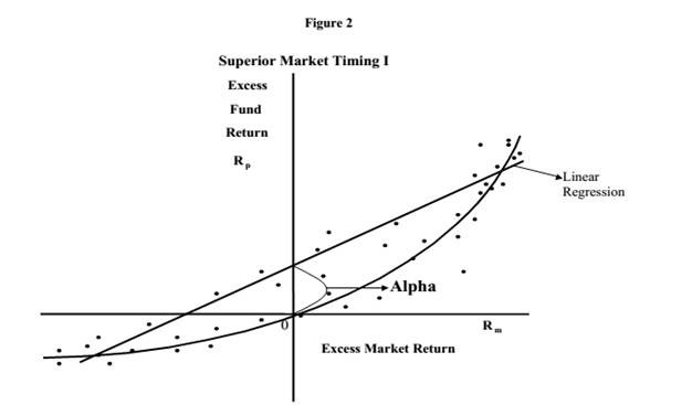 Данная меру будет положительной в том случае, если зависимость между доходностью портфеля и рынка будет нелинейной, что в свою очередь будет свидетельствовать о наличии у менеджера способности к таймингу.
