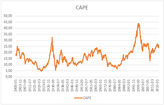 соотношения P/E Роберта Шиллера, известного также как CAPE (Campbell, Shiller, 1998), который основывается на