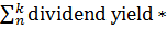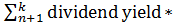 Первое слагаемое представляет собой конечную сумму в период k, если инвестор в период n приобретет на всю имеющуюся у него наличность по текущей цене. При этом наличность будет капитализироваться по безрисковой ставке. При этом, поскольку Баффетт бесплатно приобретает наличность, то затраты на капитал у него равны нулю. Вторым слагаемым является сумма, которую Баффетт будет получать, после приобретения акции в виде дивидендов.