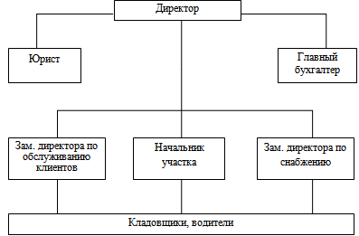 Функциональные структуры подразделения находятся в подчинении главного линейного руководителя - Директора компании. Ему также подчиняются: Зам. директора по обслуживанию клиентов; Зам. директора по снабжению; Главный бухгалтер; Начальник участка; Юрист.