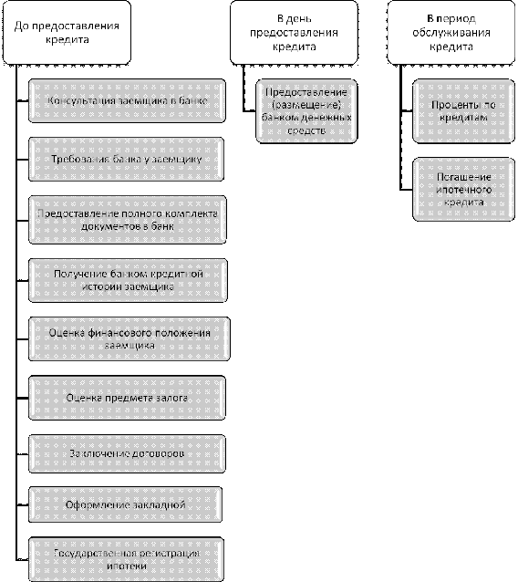 Обслуживание и погашение кредита - банк принимает платежи от заемщика в погашение кредита и уплату процентов и комиссий, ведет учет погашения основного долга и процентов. При выполнении обязательств по кредитному договору кредит считается погашенным, ипотека прекращается, о чем делается соответствующая запись в государственном реестре.