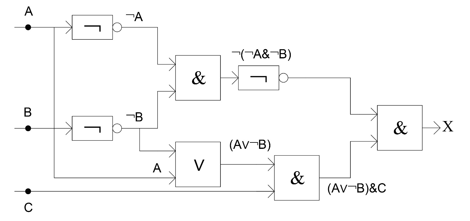 3. Составить таблицу истинности и логическую схему для функции X.