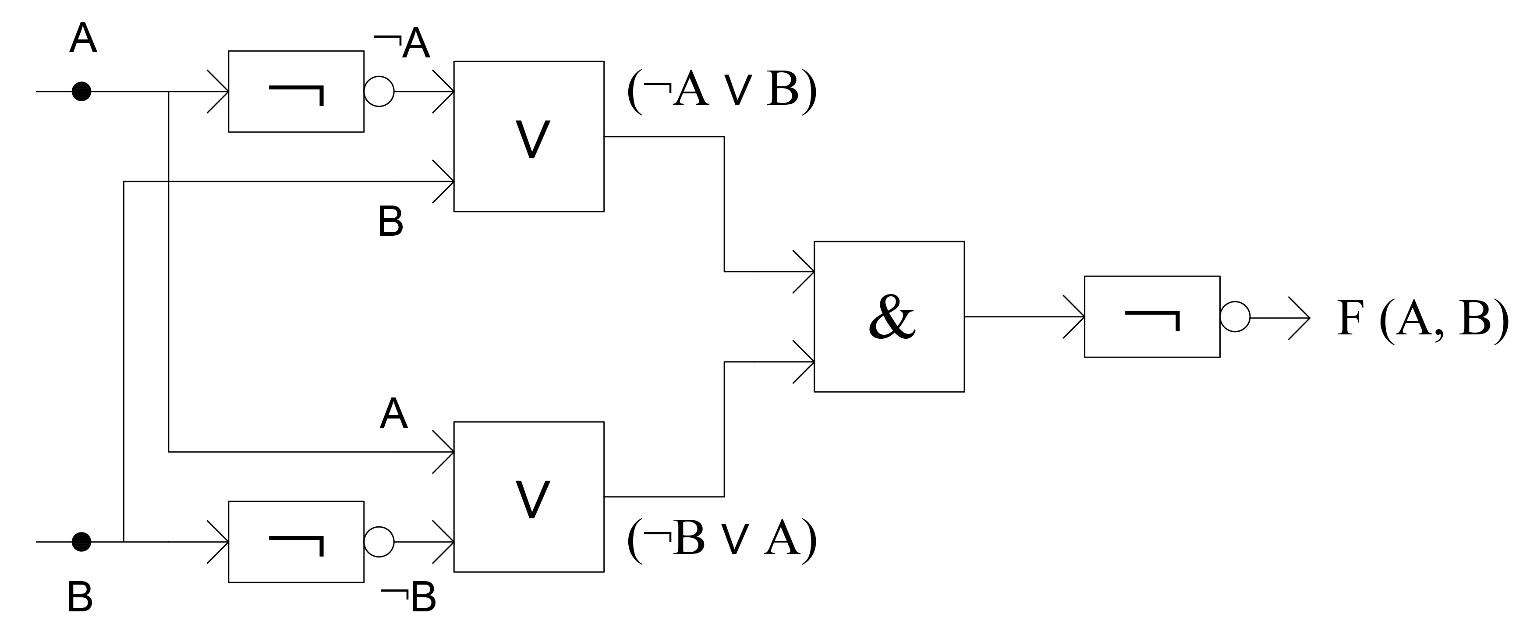 F (A, B) = ¬ ((¬A ∨ B) & (¬B ∨ A))