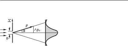 Попытаемся определить координату x свободно движущейся с импульсом p частицы, поставив на ее пути щель шириной b (рис. 3.9). До прохождения частицы через щель ее проекция