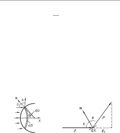 Сначала найдем силу dF, действующую на элементарное кольцо dS (рис. 1.19) в направлении оси X. При зеркальном отражении каждый фотон передает поверхности импульс px (рис. 1.20):