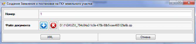 В данном окне необходимо ввести номер Межевого плана и выбрать файл ZIP-пакета.