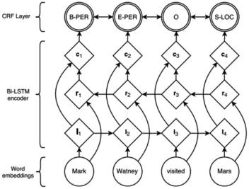 Fig. 9 LSTM-CRF for named entity recognition [59]
