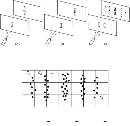Imagine for a moment that we are only interested in modeling the data of the experiment (either with bullets or electrons) in a very instrumentalistic way, by limiting the description only to what can be observed at the level of the detection screen, i.e., the traces that are left on it. For this, one can proceed as follows. The surface of the detection screen is Þrst partitioned into a given number n of numbered cells C1, . . . , Cn (see Fig. 4). Then, the experiment is run until m traces are obtained on it, m being typically a large number. Also, the number of traces of impact in each cell is counted. If mAB (Ci ) is the number of traces counted in cell Ci , i = 1, . . . , n, the experimental probability of having an impact in that cell is given by the ratio